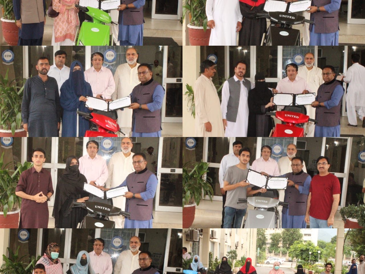 The Engineering Development Board (EDB), working under the Ministry of Industries and Production (MoIP), has successfully distributed 187 free electric scooters to top position-holder students of government colleges across Pakistan who passed their HSSC examinations in FY 2024. This initiative was carried out under the Prime Minister’s flagship Pakistan Accelerated Vehicle Electrification (PAVE) Scheme, launched as part of the National Electric Vehicle (NEV) Policy 2025–30.